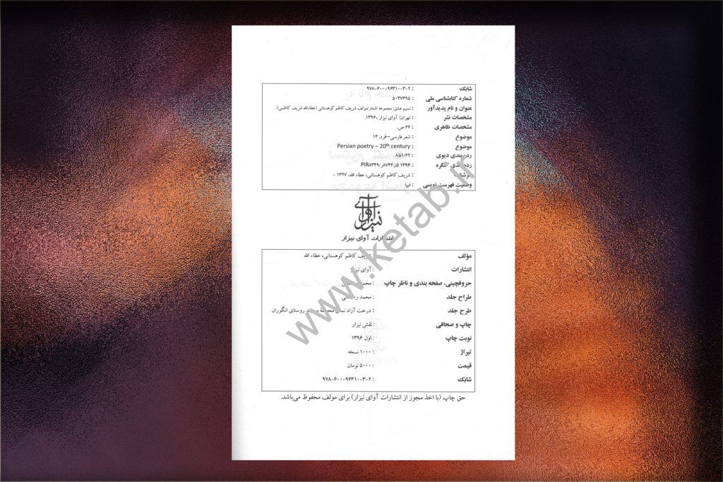 ۶۴ صفحه – وزیری (شومیز) – چاپ ۱ – ۱۰۰۰ نسخه ISBN: 978-600-96310-3-2